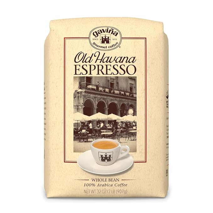 - 32 oz Bag of Gaviña Old Havana Espresso Whole Bean Coffee — freshly packed to preserve peak flavor and aroma. Grind fresh for a truly rich espresso experience.