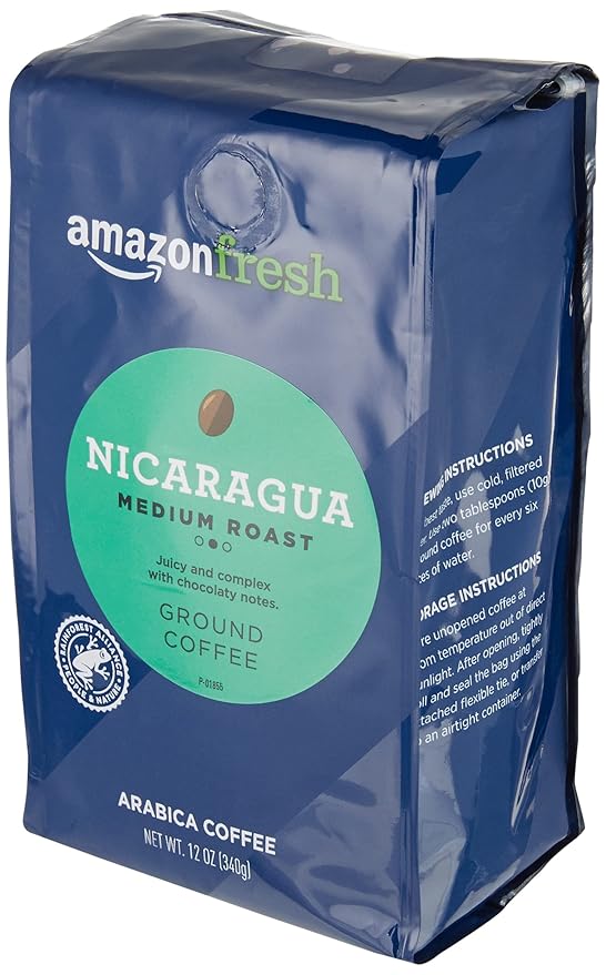 Amazon Fresh, Nicaragua Ground Coffee, Medium Roast, 12 Oz
