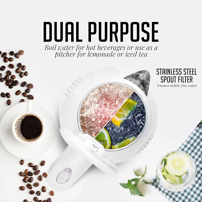 - DUAL PURPOSE – This kettle serves more than just boiling water; it can also be used as a pitcher for your cold beverages. Perfect for drinks like juices and more, it’s a versatile addition to your kitchen. Plus, it’s easy to clean with baking soda or lemon water, ensuring hassle-free maintenance.