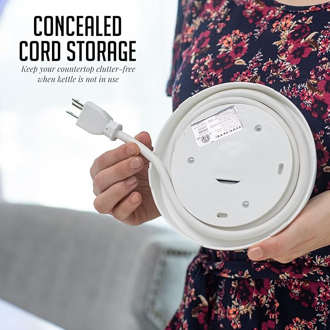 - BUILT-IN SAFETY FEATURES – This kettle is designed with safety in mind, featuring an auto-shutoff function and boil-dry protection, which activates when the water reaches boiling point or if there is no water in the kettle. It also includes a power-on indicator light, allowing you to easily check if the kettle is on at a glance.