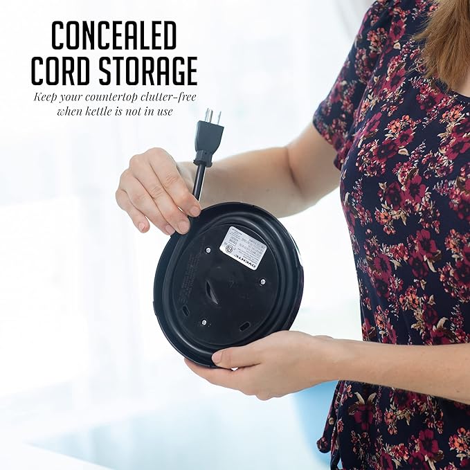 - BOILS CLEAN WATER FASTER – Powered by 1100 watts (120V), this kettle boils up to 1.7 liters of water in just minutes, saving electricity compared to traditional stovetop kettles. Made with food-grade 304 stainless steel, every surface of the kettle that comes into contact with water ensures pure and healthy water for your tea, coffee or other beverages.