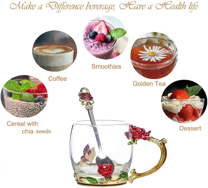 - ELEGANT STYLE&THICK GLASS(3D FLOWER BUTTERFLY DESIGN): The flower and butterfly decorations are vivid and TOP quality,strong adhesive UV glue combined glass and enamel handle into a unique glass mug. such a flower glass coffee mugs cups will leave a deep impression on your guest.