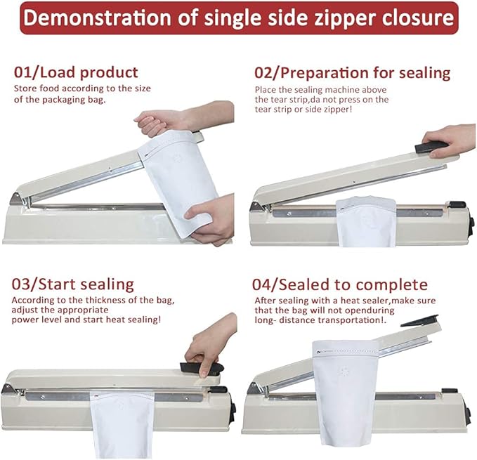 - ☞Operation Instructions: 1.Put the items to be stored 2.Must use sealing machine(not include) to seal the top of the bag(occasionally not completely sealed,can turn the bag over,heat seal again) 3.Squeeze out the air from the bag through the degassing valve