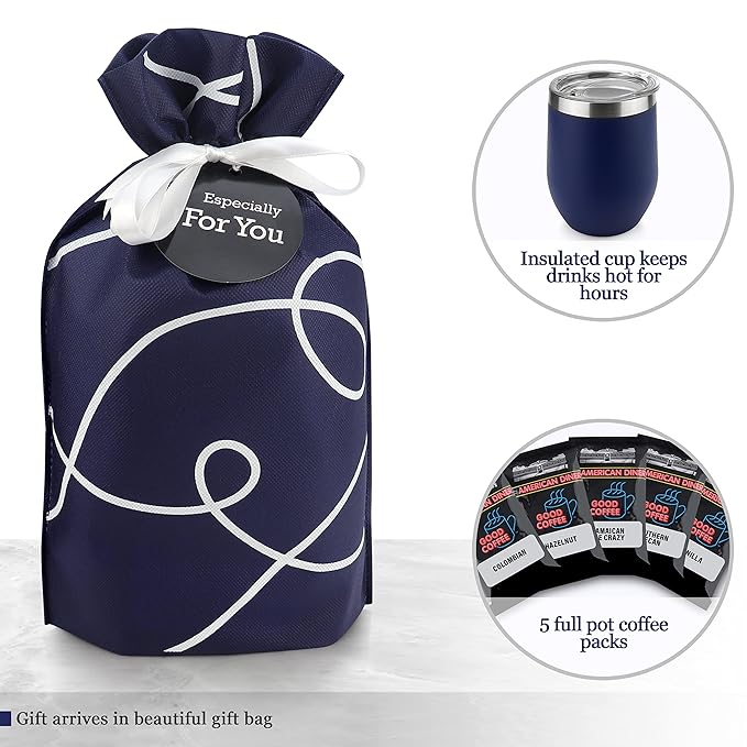 Coffee Lovers Gifts Basket - Gift Sets Include Temperature Retention Insulated Cup and 5 Special Blend Full Pot Ground-Coffee Samplers Presented in Beautiful Gift Bag For Women & Men