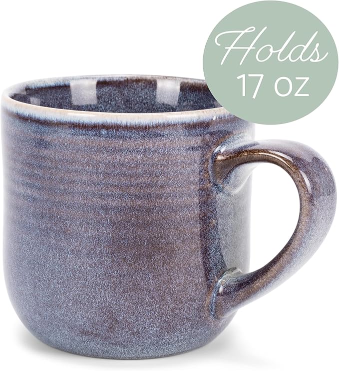 - MODERN FARMHOUSE: Made of ceramic stoneware with a thrown pottery, handcrafted look. Each mug holds approximately 17 fluid ounces of your favorite hot or cold coffee, tea, latte, or cocoa.