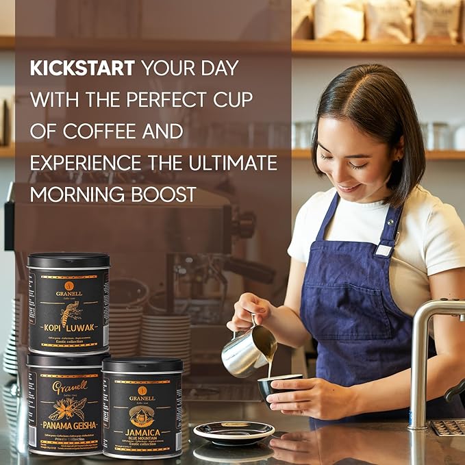 Cafés Granell – Kopi Luwak + Blue Mountain Coffee | Exotic Collection | Fresh Whole Gourmet Beans | JACRA Certified | 100% Arabica Coffee-Premium Medium Roast | 3.53oz