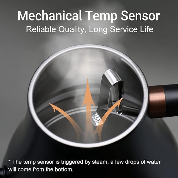 - Durability: Unlike other electric kettle made of plastic or easy faulty temperature sensor, its stainless steel mechanical temp sensor is more reliable and durable, it expanded its serving life a lot.