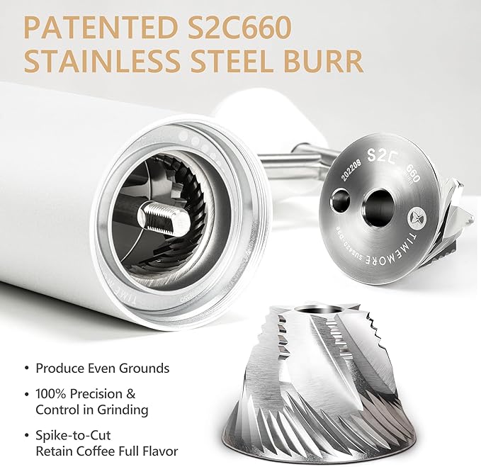 - GRIND WITH EASE - The TIMEMORE Chestnut C3S PRO manual coffee grinder features upgraded S2C steel burrs for better cutting performance, ensuring your coffee beans taste their best with consistent and swift grinding, preserving the flavor of your coffee beans.