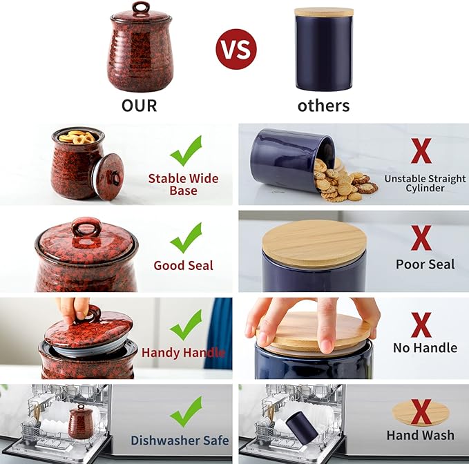 - Great Gift Choice: With its vintage and charming red appearance, Tikooere food storage jars become a great gift choice for various occasions such as homewarming, birthdays, weddings, parties, etc. Whether it is used as a kitchen item or a unique decoration, it can give the recipient unexpected surprises and a lasting pleasant experience. Its perfect combination of practicality and beauty makes it an ideal gift for relatives and friends.