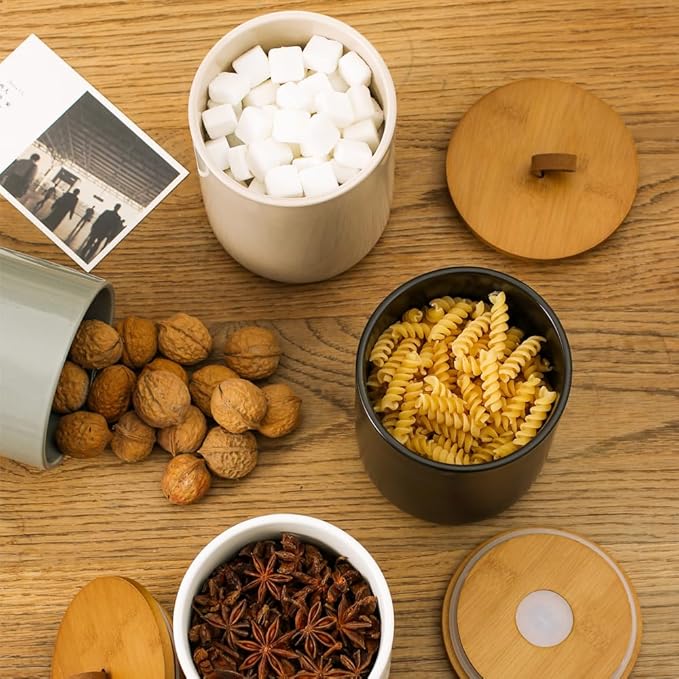 - FOOD GRADE CERAMIC: The Food Storage Jars Is Made Of Superior Quality Thick Ceramics, Hard, Cold And Heat Resistant. The Lid Has A Rubber Ring Inside To Prevent Air From Entering And Ensure Food Is Dry. The appearance of the airtight glass jar is delicately polished and refined, and is not easy to fade.