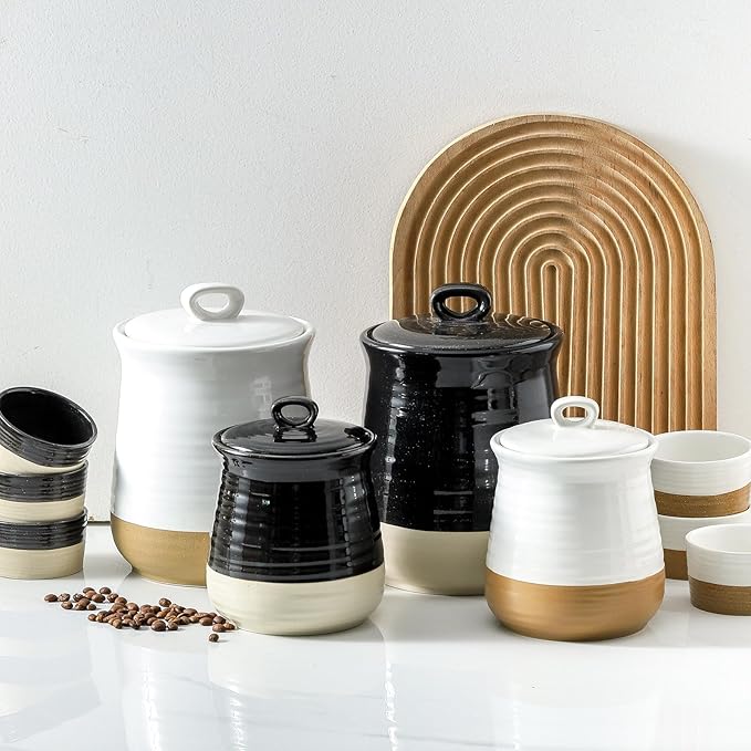 Ceramic Food Storage Jar,Coffee Canister for Countertop with Lids Airtight,Large Flour,Spices,Beans,Rice and Candies Containers for Kitchen and Home,Farmhouse Kitchen Decor,35 OZ Black