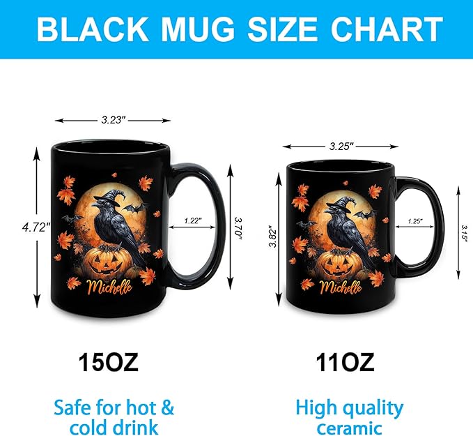 Hyturtle Personalized Halloween Raven Crow Mug - Raven Gift For Women Lover - Wild Animal Lover Gift For Her - Spooky Season Decor For Fall Season Halloween - Coffee Name Cup Ceramic Mug 11 oz 15 oz