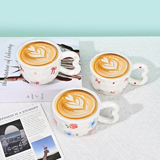 - UNIQUE DESIGN: Handmade with irregular shape; Wide cup body and unique heart shaped handle design; Matte finish; Showing a clear attitude towards life