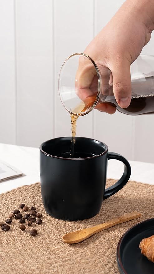 famiware Mercury Coffee Mugs 13 oz, Coffee Mugs Set of 6 with Handle, Cups for Latte, Hot Tea, Cappuccino, Mocha, Cocoa, Matte Black
