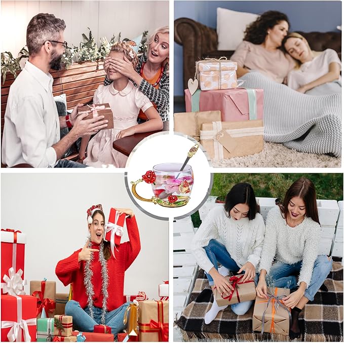 - VERSATILE USE: Flower glass mugs can be used to serve a variety of beverages from coffee to hot chocolate or cold tea, our enameled glass mugs with handles , Flower glass teacups come with delicate spoons, cleaning cloths and coasters for a thoughtful and practical touch.
