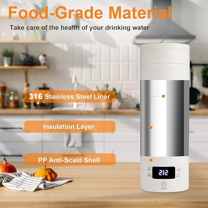 - SUITABLE TEMPERATURE CONTROL: Portable electric kettle adopts (113-131-176-212°F) four-speed temperature control, 316 stainless steel inner liner, LED large screen display, which makes the portable insulated kettle more stable and excellent performance.