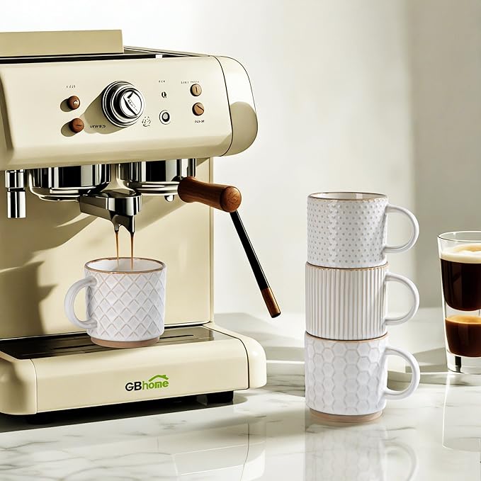 GBHOME 6OZ Stackable Coffee Mugs, Ceramic Coffee Mugs with Texture Patterns for Man,Woman,Dad,Mom, Modern Coffee Cups Set of 4 for Espresso/Cappuccino. Dishwasher&Microwave Safe