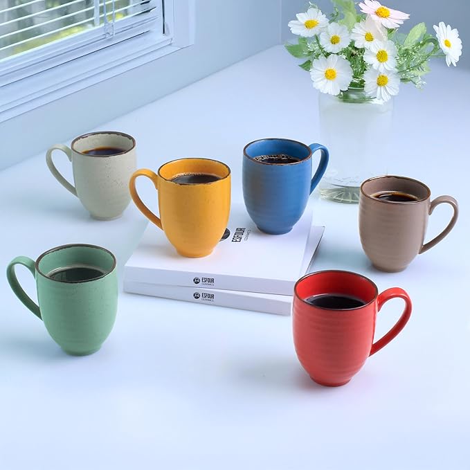 - β γππππππππ ππππππ π ππ ππππππ ππππγEsfour premium 14 Ounce (Top to the Rim) for Coffee, Set of 6, comes in Natural Assorted Colors. With plenty of space between the handle and the cup itself, both men and women can easily hold the cup in their hand with a comfortable grip, and won't slip off easily. The handle also doesn't get hot after heating it in the microwave.