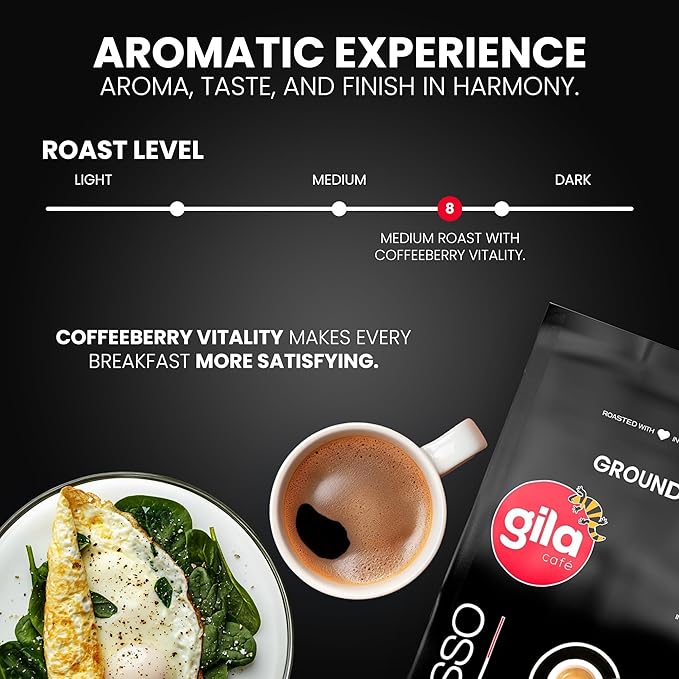 gila café Ground Coffee Medium Roast Espresso 32oz (1-Pack) - 100% Mexican Arabica Bean Coffee Grounds - Made with Coffeeberry - Chocolate, Hazelnut, Vanilla Notes