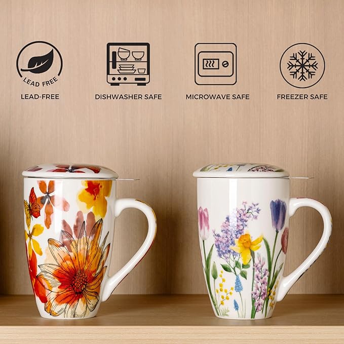 - DRINK SAFTY AND HEALTH: Unlike other ceramic companies, our glazes are lead free.The Tea mug is made of premium material, and the glaze is all-natural. After 2340℉ high temperature firing for 13 hours, the mug is lead-free, cadmium free, meaning you will never have to worry about any health problem.