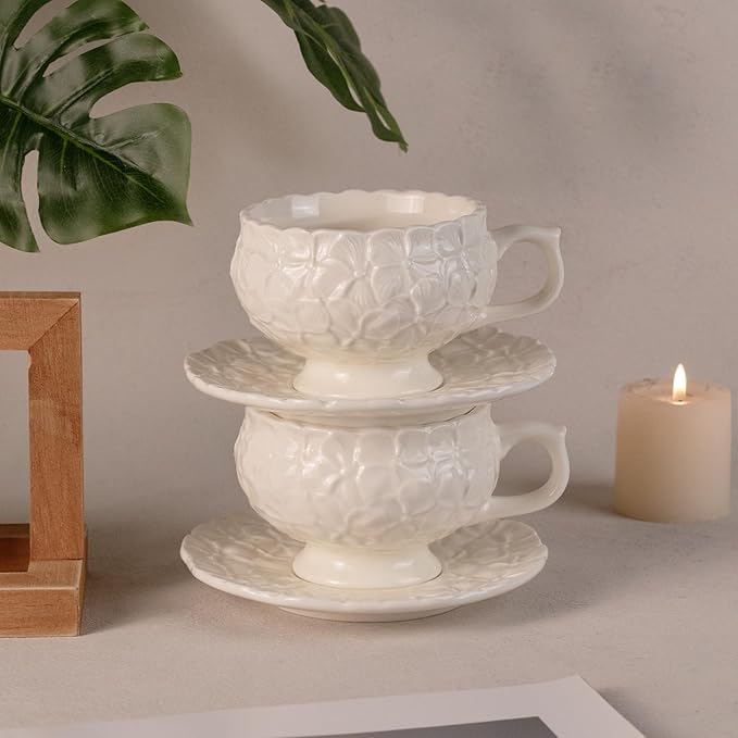 - Elegant Design: Our ceramic tea cup and saucer set features a handcrafted, vintage-inspired design that adds a touch of sophistication to your tea time, making it perfect for special occasions or daily use.