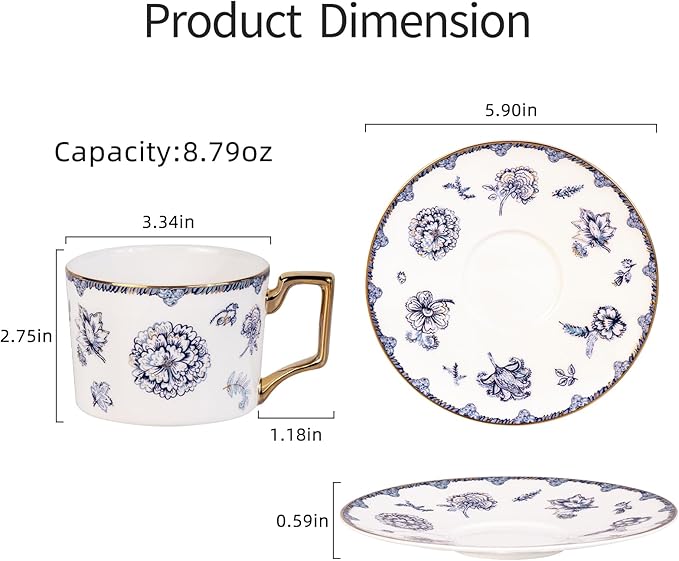 - Ideal for Gifting and Collecting:This exquisite bone china cup and saucer set makes a wonderful gift for weddings, anniversaries, or any special occasion. It is also a great addition to your own collection of fine china. The set comes beautifully packaged, ready to be presented as a thoughtful and elegant gift that will be cherished for years to come.