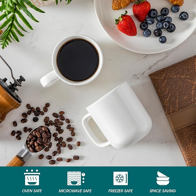 - 【Dishwasher-Safe & Durable】: Fired at 2372°F+ for a fully fused, non-porous glaze (vs. standard 1832°F), this coffee mugs set of 6 resists high-pressure water and heat. The low-absorption ceramic body (<0.3%) prevents detergent residue buildup, ensuring easy cleaning and long-lasting use.