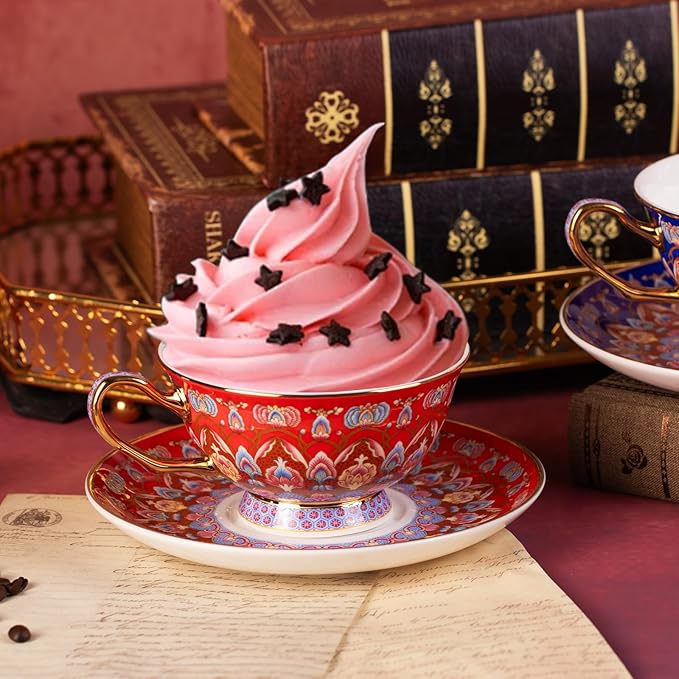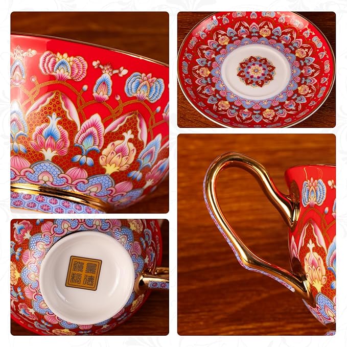 - 【Ideal Capacity】Each vintage cups with saucers holds 8oz , perfect for savoring a full brew without constant refills. Paired with matching saucers for a complete tea experience. Care: Hand wash only—avoid microwaves, ovens, and dishwashers to preserve the gilded finish. Gently wipe dry to maintain brilliance.