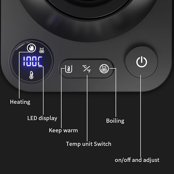 - LCD Display Screen: The electric kettle is equipped with an LCD screen, which intuitively displays the set temperature and real-time temperature, making the brewing process of coffee or tea more convenient and enhancing the brewing experience