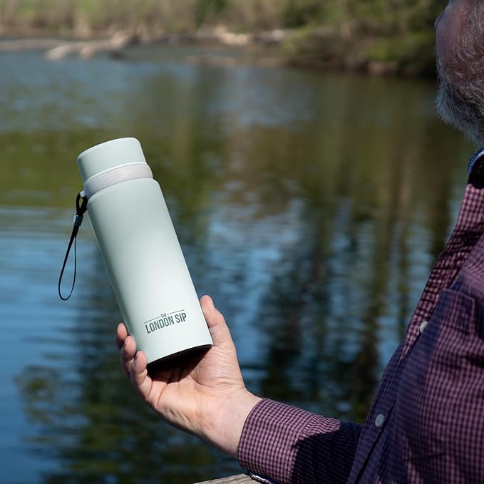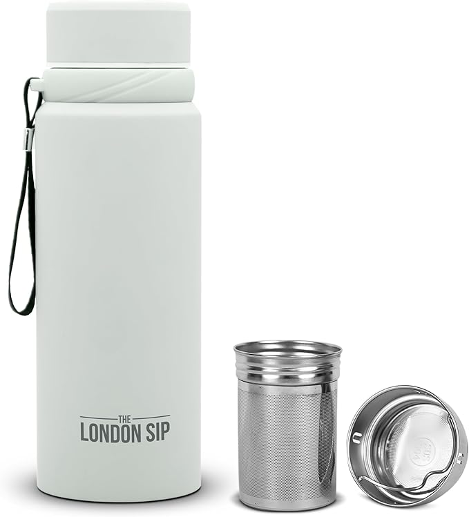 London Sip 25 oz Multi-Purpose Tea Infuser Mug – Fruit Infuser Water Bottle for Hot and Cold – Double Wall Stainless Steel Insulated, Pearl White