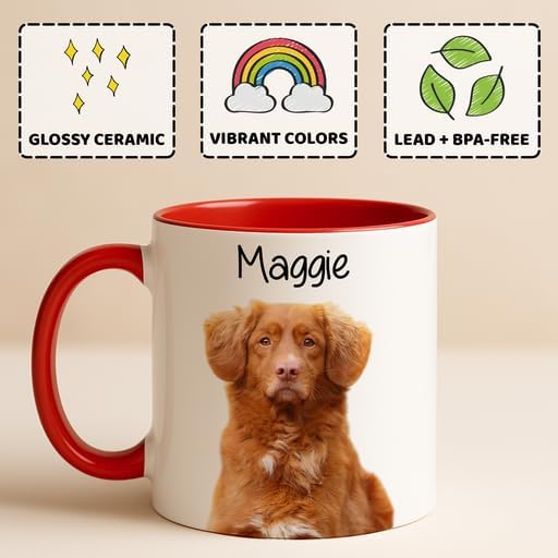 - Photo to Mug Personalization: Turn your dog's real photo into a high-quality print on a glossy ceramic mug with their name displayed above.
