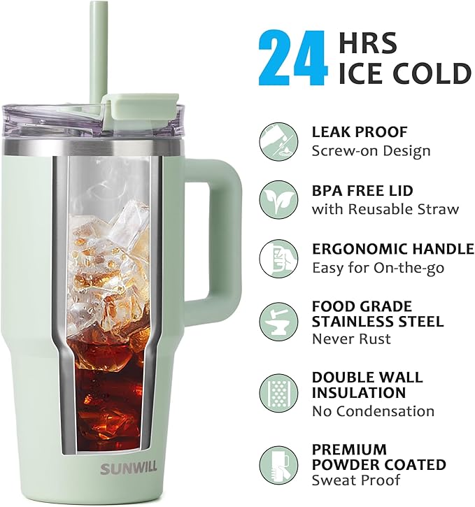 - Insulated 20 oz Coffee Tumbler with Handle: Double-wall insulated technology, keep drinks chill for over 24 hours, sweat free and no condensation, large capacity for whole day use