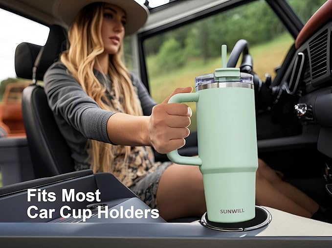 SUNWILL Coffee Tumbler with Handle, 30 oz Travel Mug with Lid and Straw Insulated, Stainless Steel Cup Leak Proof for Travel & Outdoor, Cupholder Friendly, Powder Coated Matcha Cream