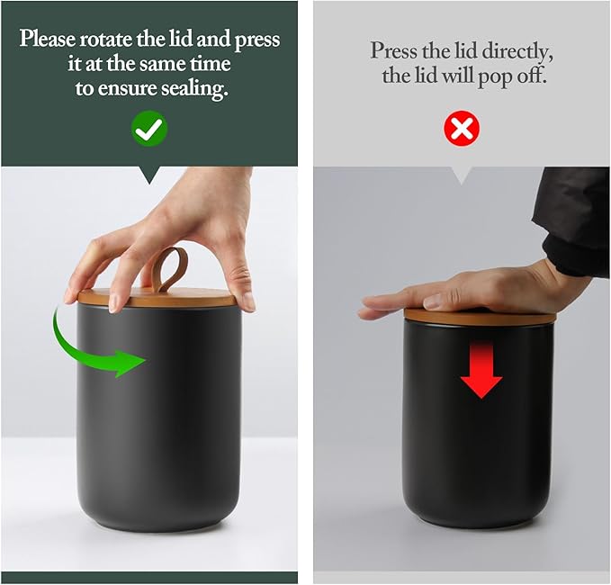 Kitchen Canisters Set of 2 Large with Top Handle, Canisters Sets for The Kitchen, Airtight Kitchen Canisters for Countertop, Modern Ceramic Jar with Wooden Lid for Coffee Flour