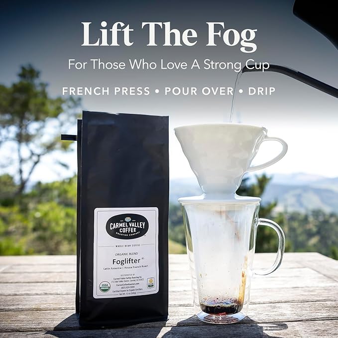 Carmel Valley Coffee Roasting - Whole Bean Coffee Foglifter - Certified Organic French Dark Roast, Premium Coffee - 12 Oz Bag, 1 Pack
