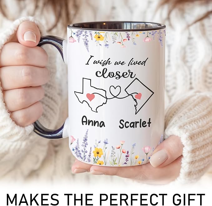 - Celebrate Friendship Across the Miles – This long distance best friend mug captures the heartfelt message: “I wish we lived closer.” A sweet daily reminder of love, laughter, and shared memories – no matter the miles between you.