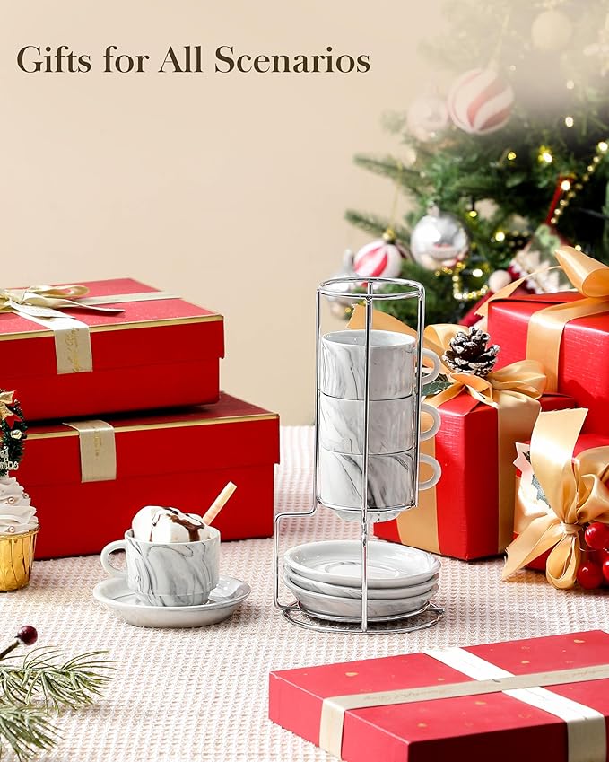 - 【UNLOCK THE ART OF COFFEE ENJOYMENT】This meticulously designed set—featuring elegant saucers and a modern stacking stand—transforms your coffee routine into a daily ritual of sophistication. Their timeless, café-inspired design brings a touch of European charm to your kitchen, making every sip feel like a getaway. Whether you’re a coffee connoisseur or a casual sipper, MALACASA turns your daily grind into a moment of pure indulgence.