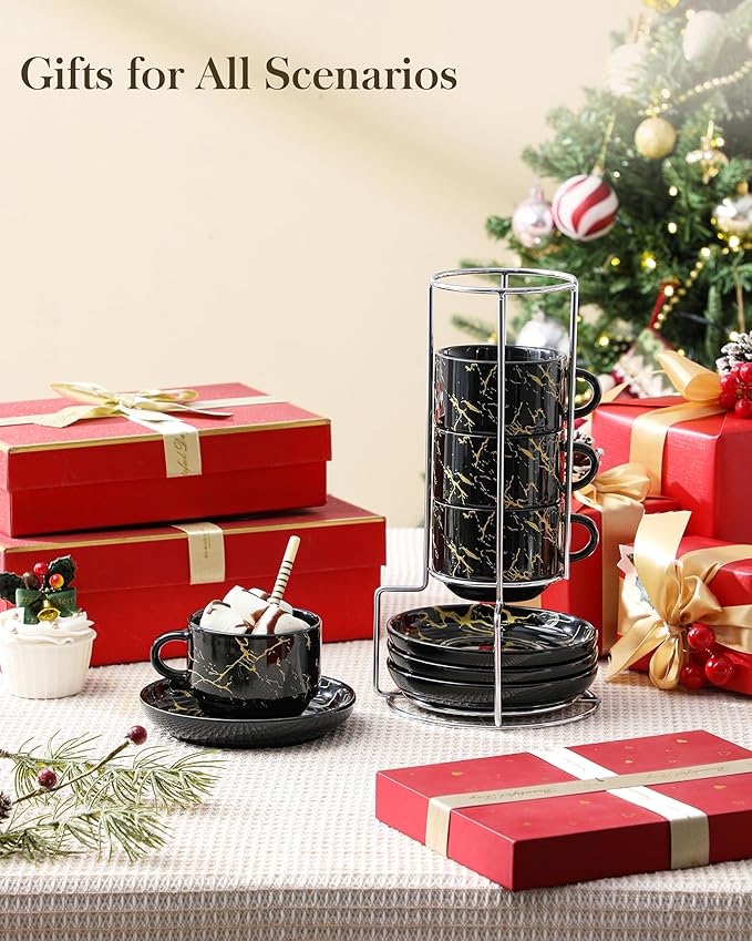 - 【UNLOCK THE ART OF COFFEE ENJOYMENT】This meticulously designed set—featuring elegant saucers and a modern stacking stand—transforms your coffee routine into a daily ritual of sophistication. Their timeless, café-inspired design brings a touch of European charm to your kitchen, making every sip feel like a getaway. Whether you’re a coffee connoisseur or a casual sipper, MALACASA turns your daily grind into a moment of pure indulgence.