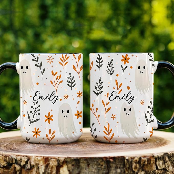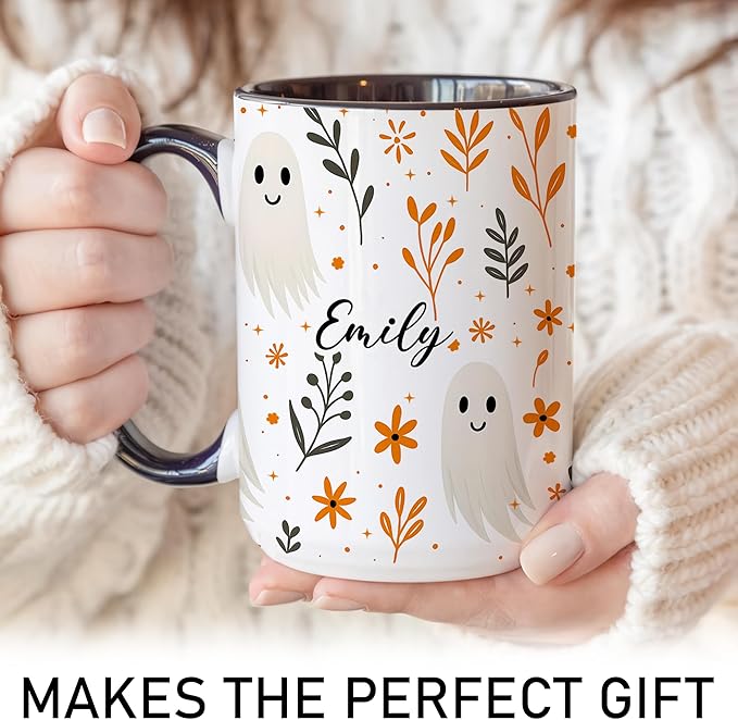 Halloween Coffee Mug Cute Ghost Floral Birthday Halloween Thanksgiving Christmas Gift For Kids Friends Girls Custom Name Ceramic Cup