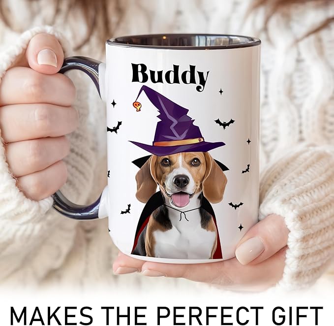 Personalized Halloween Dog Mug Custom Pet Photo Cup Halloween-Birthday-Christmas Gift For Dog Lovers From Pet Parents Add Name-Image Cute Witch Beagle Ceramic Coffee Mug