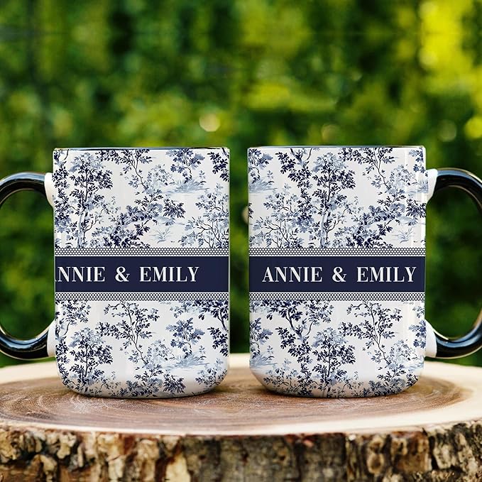 - Design Meaning: This elegant floral design features a personalized touch with the names of your best friends, "Annie & Emily," creating a beautiful and meaningful gift. The intricate Chinoiserie and Toile de Jouy patterns make this mug an exquisite piece for any occasion.