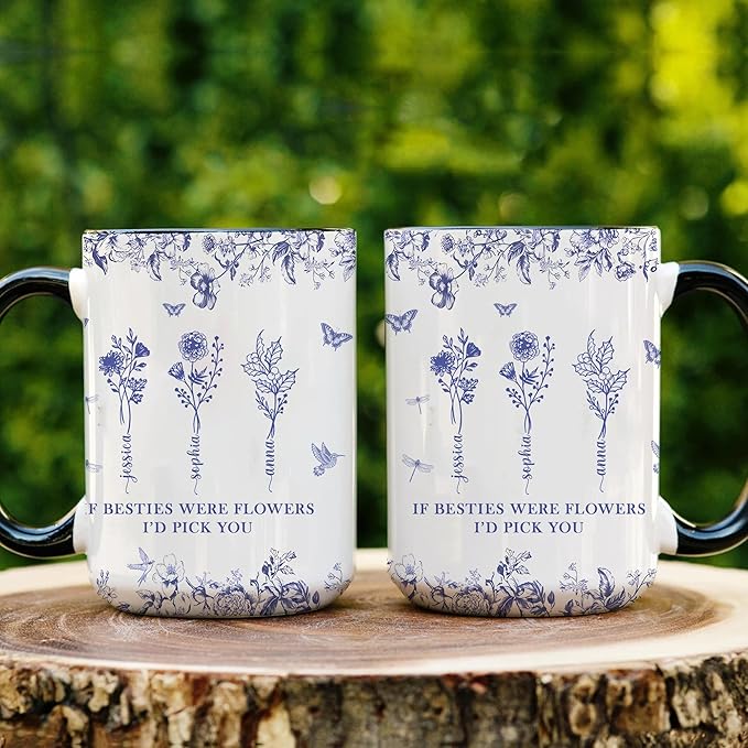Personalized Best Friend Mug - Custom Floral Design - Birthday Gift for Bestie - Unique Friendship Cup - Thoughtful Gift for Best Friends - Custom Photo Mug for Best Friends