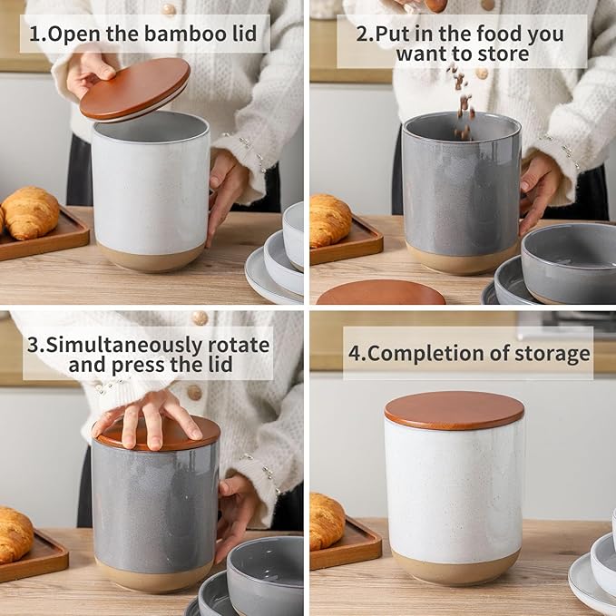 - Farmhouse Style Decorative Kitchen:Elegant and sophisticated, the Tikooere Food Storage Jar's farmhouse style colorblocking design is both functional and beautiful. Whether placed in the cabinet or on the countertop, it can add a unique decoration to the kitchen space.