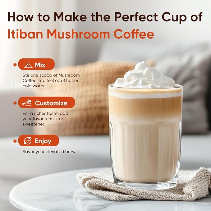 - Gentle & Flavorful Instant Coffee Alternative: Experience the rich, smooth taste of our mushroom coffee instant with subtle caramel and hazelnut notes. With reduced acidity and lower caffeine, it’s an ideal daily drink for clean, sustained energy—enjoyed on its own without jitters or stomach discomfort.