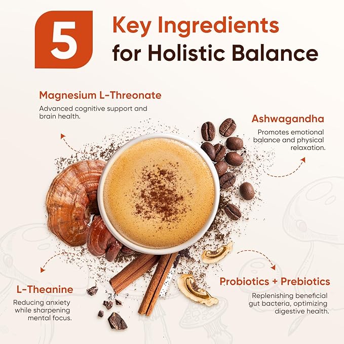 - Enhanced with Lion’s Mane & Ashwagandha: Formulated with Lion’s Mane, Ashwagandha, Magnesium L-Threonate, and L-Theanine, this synergistic blend supports cognitive function, calm focus, and emotional balance. Enjoy the benefits of ashwagandha mushroom coffee in every cup for a happier, more productive day.