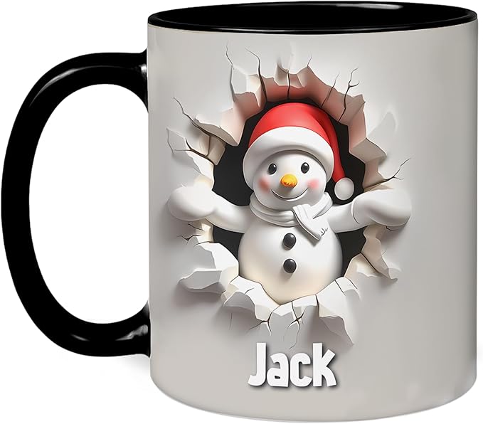 - FUN AND UNIQUE DESIGN – This personalized Christmas mug features a playful snowman breaking through the mug design, creating a 3D illusion effect that instantly brings holiday cheer. Add your custom name for a one-of-a-kind festive cup that makes enjoying hot cocoa, coffee, or tea even more special.