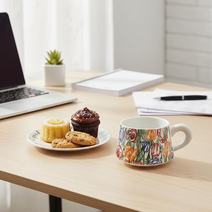 - Vibrant Floral Design & Inspirational Saucers: Adorned with colorful tulips in red, yellow, blue, and orange, this ceramic cup brings a burst of springtime charm to your daily brew. The matching saucer features uplifting text (“May all good things be expected as you…”), blending artistry with motivation for every sip.
