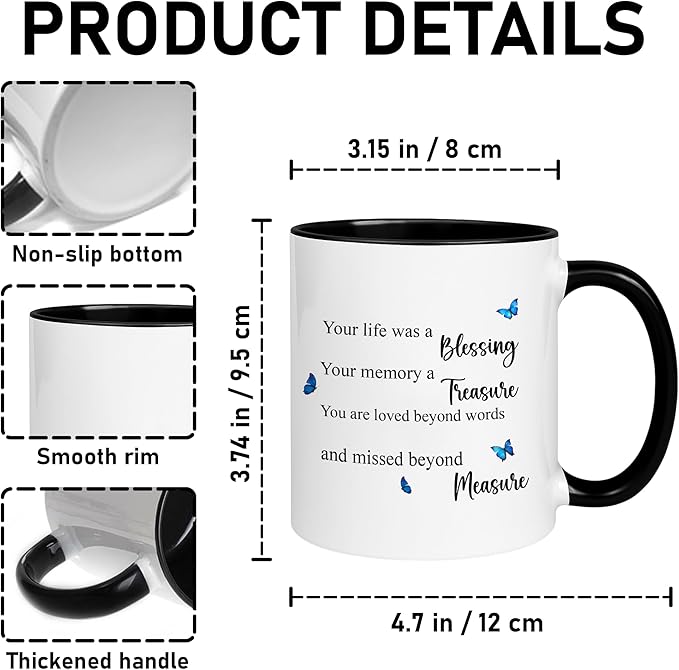 - MEANINGFUL SYMBOLISM – Featuring butterflies that represent hope and transformation, this memorial mug serves as a gentle reminder that the spirit of your loved one lives on. The touching design provides comfort and connection in moments of remembrance and healing.