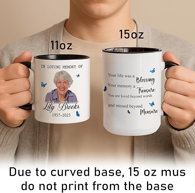 - HIGH-QUALITY CERAMIC CONSTRUCTION – Crafted from premium ceramic with a glossy finish, this memorial coffee cup is microwave- and dishwasher-safe. Durable and elegant, it is designed for everyday use while preserving the print and message beautifully over time.