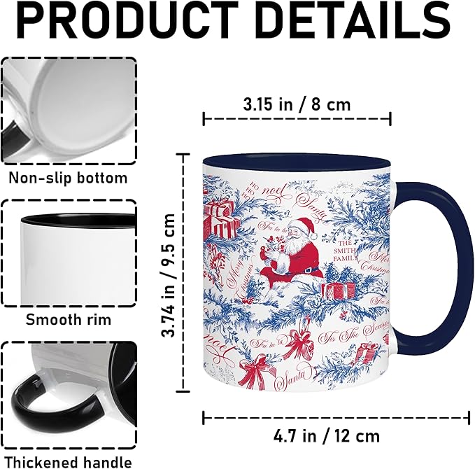 - FESTIVE HOLIDAY DESIGN – Adorned with Santa, gifts, and seasonal flourishes, this custom Christmas mug instantly brightens any setting. Its cheerful design captures the magic of the season, making every sip of hot cocoa or coffee feel like a celebration of warmth, joy, and togetherness.